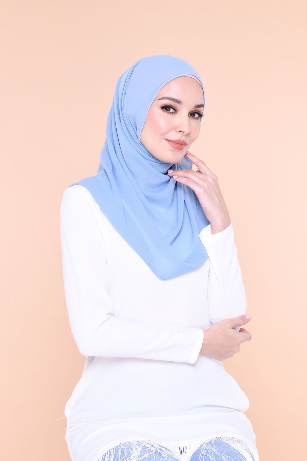 - Type of hijab : Long scarf or shawl in tubular shape