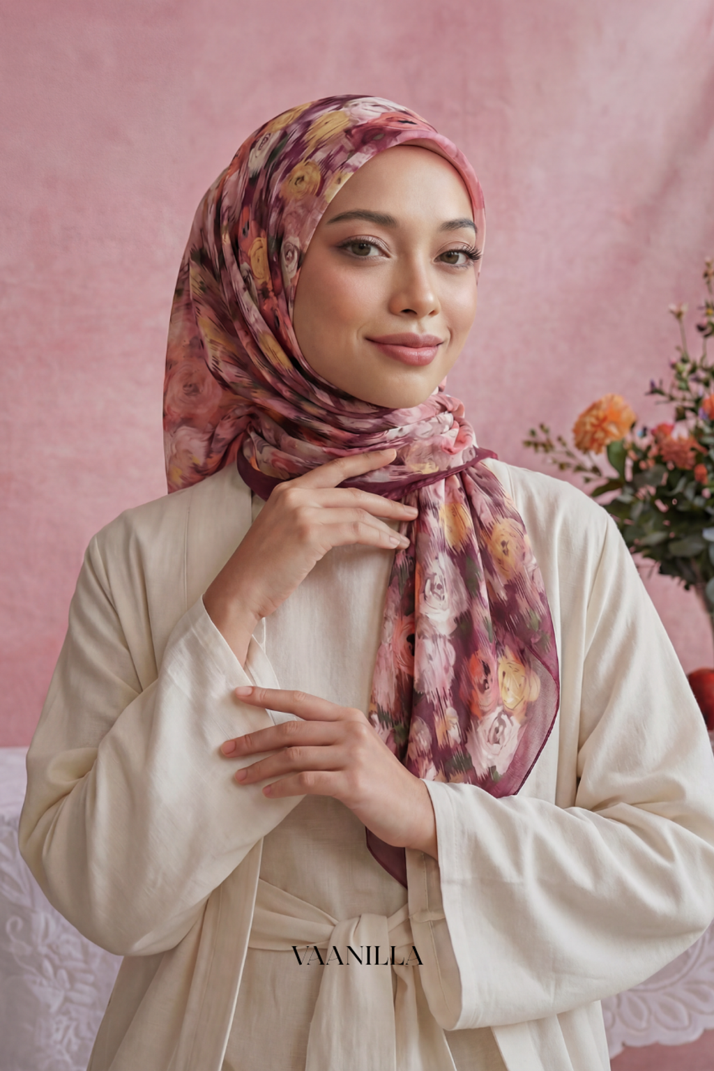 Whether you're heading out for daily errands or attending a special event, its easy-to-shape material, elegant motif, and soft texture make it a go-to choice. Finished with your choice of baby seam or machine-rolled hem and lightly infused with a refreshing scent, this scarf offers a polished, youthful look with minimal effort.